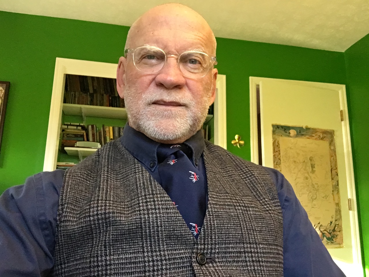 But dressing up became a treat, Sunday, though the only place I went was St. Paul’s parking lot to pick up drive-by Communion. However, I had dressed like I was going somewhere, and it lifted my mood. That feeling reminded me of advice I gave to writing students long ago: when you write, make yourself think of going to work. Dress for it. Wear hard shoes that you need to polish. Comb—or in my case, trim—the hair and beard. Keep to a schedule, a time to start and stop. Take breaks because you are owed them, but get back to work—on anything.